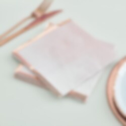16 st. servetter i vackra rosa pastellfärger med roséguldfolierad kant. Perfekta att duka fram på bordet inför kalas eller fest. Servetterna har även en glanseffekt på ytan. Servetterna är 2-lagers och är ca 33 x 33 cm stora utvikta.