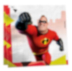 20 st. coola servetter med motiv från filmen Superhjältarna 2. Servetterna är 33 x 33 cm stora utvikta.