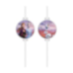4 st. pappsugrör med motiv av Anna, Elsa och Olaf från filmen Frost 2. Ett fint dukningstillbehör att ha med till Frostkalaset. Sugrören är ca 19 cm långa och motiven är ca 7 cm i diameter.
