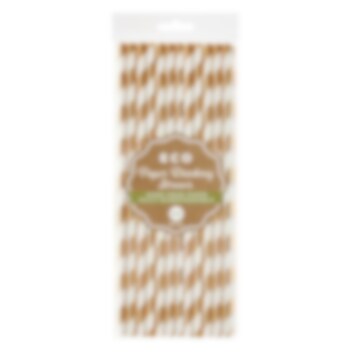 24 st. vita sugrör av papp med ränder i roséguld. Sugrören är ca 20 cm långa.