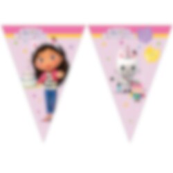 Flaggirlang av papper med söta motiv från Gabby's Dockskåp. En snygg dekoration att hänga upp i kalasrummet när det är dags för festligheter.