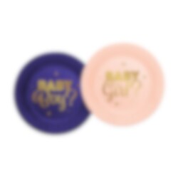 Gör dukningen extra fin inför gender reveal med dessa dekorativa assietter i två olika färger med texterna Baby Boy? och Baby Girl?. De passar perfekt till tårta, snacks och andra godsaker när det är dags att samla nära och kära inför den stora avslöjandet.