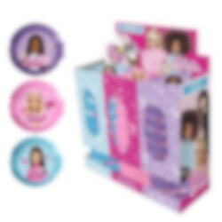 Barbie tuggummi på rulle som finns i tre smaker: blåbär, jordgubb och cola. De säljs dock osorterade och styckvis så det blir en överraskning vilken smak du får. Vikt 10 gram.