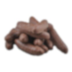 Ingredienser: Socker, glukos-fruktossirap, vatten, fullhärdade vegetabiliska oljor (palmkärn, kokos, palm), fuktighetsbevarande medel (sorbitol), gelatin, VASSLEPULVER (från MJÖLK), fettreducerat kakaopulver, SKUMMJÖLKSPULVER, emulgeringsmedel (SOJALECITIN, E492), aromämne, färgämne (E100).