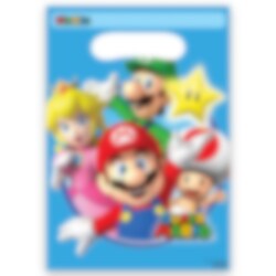 8 st. kalaspåsar med snyggt motiv av Mario och hans vänner från Super Mario Bros. Fyll påsarna med godis och någon leksak och ge dem till gästerna under kalaset.