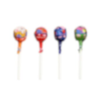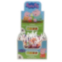 Peppa Pig godisklubbor i fyra olika smaker: apelsin, äpple, jordgubb och hallon. Klubborna säljs osorterade och styckvis. Vikt 10 gram.