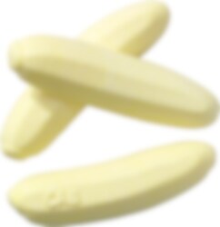 Ingredienser: Socker, glukos-fruktossirap, vatten, gelatin, fukthetsbevarande medel (sorbitol), surhetsreglerande medel (citronsyra), bananarom, färgämne (E100).