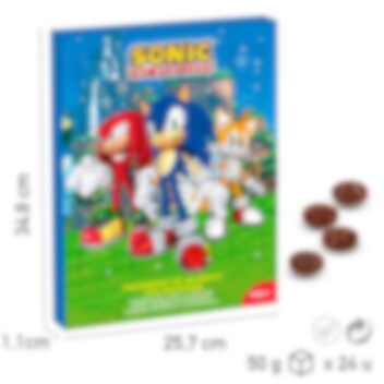 Julkalender med goda chokladbitar i Sonic the Hedgehog tema. Kalendern är ca 35 x 25 cm.