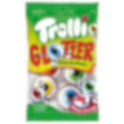 Trolli Pop Eyes är ett roligt och läskigt godis i form av ögon i skumgelé, perfekt för Halloween. De har en god fruktsmak och sur fyllning, 75 gram.