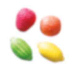 Färgglada tuggummin med fruktsmak som har syrligt pulver inuti. Säljs i storpack om 1 kilo.