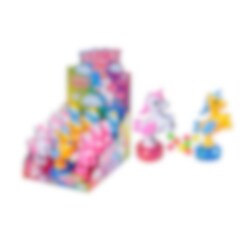 Förpackningen innehåller 12 gram godis och enhörningen är ca 10 cm hög och kommer i olika färger.