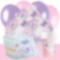 Detta färdiga kalaspaket med söta tillbehör i fjärilstema inkluderar tallrikar (23 cm), pappmuggar (250 ml) och servetter (33 x 33 cm) för 8 eller 16 personer, utöver det så ingår 10 st. rosa ballonger och 10 st. lila ballonger och en ljusblå bordsduk av plast (137 x 274 cm). Komplettera gärna med kalaspåsar eller partyboxar, godis, leksaker, dekorationer och spännande baktillbehör.