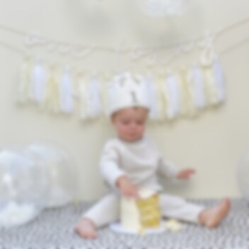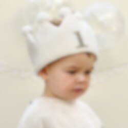 Fira din lilla 1-årings födelsedag med stil med denna söta tygkrona! Den krämfärgade kronan har pom pom-dekorationer och knytband av grosgrain. Perfekt för att skapa ett minnesvärt första födelsedagsfirande.