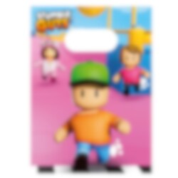 4 st. kalaspåsar av papper med färgglatt motiv från Stumble Guys, där tre figurer springer fram på en klassisk hinderbana i spelets lekfulla stil. Perfekta att fylla med godis, små leksaker eller roliga överraskningar som barnen kan ta med sig hem efter kalaset.