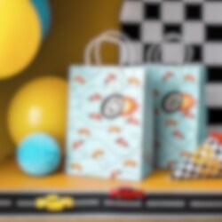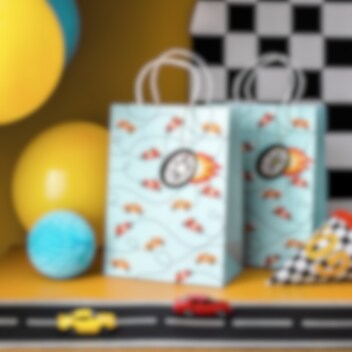 Presentpåse som sticker ut med sin coola design med klassiska racing-bilar. Påsen har två handtag, är tillverkad av papper och är 10 x 18 x 25 cm stor.