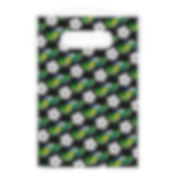 8 st. svarta kalaspåsar av papper med coola motiv av fotbollar och gröna fotbollsskor. Fyll påsarna med smaskigt godis och skojiga leksaker och ge dem sedan till kompisarna under kalaset.