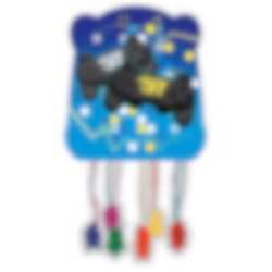 Få spelstämningen på topp med denna gaming-inspirerade piñata! Tillverkad av tjock papp och dekorerad med coola motiv på båda sidor. Barnen kan dra i snörena undertill för att hitta skatten – ett prisvärt val för alla små gamers!