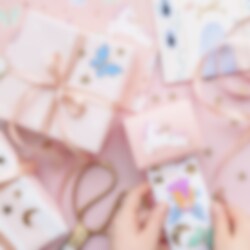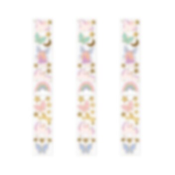 23 st. klistermärken med fina enhörningsmotiv i 12 olika utföranden. Klistermärkena sitter på en praktisk rulle som är 126 cm lång.