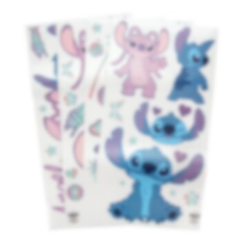 58 st. väggdekaler med motiv från Lilo & Stitch, perfekta för att dekorera väggarna och ge rummet en personlig touch! Dekalerna är fördelade på 4 ark och varierar i storlek från 3 till 16 cm, vilket ger dig många kreativa möjligheter att skapa din egen unika design.