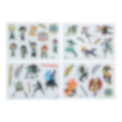 35 st. vattentåliga klistermärken med motiv från My Hero Academia, fördelade på 4 ark. Perfekta för att dekorera dina prylar och visa upp din kärlek för serien.