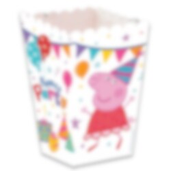 Servera snacks och popcorn på ett roligt sätt med denna söta Peppa Pig-popcornbox! Den är enkel att vika ihop, är tillverkad av papp och har måtten 12 x 5 cm. Säljs styckvis.