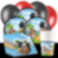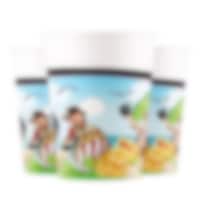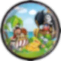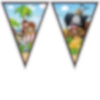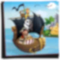 4 st. kalaspåsar av papper med ett färgstarkt piratmotiv med pirater, ett svart piratskepp och en skattkista full av guld mot en tropisk ö. Perfekta att fylla med godis, små leksaker eller överraskningar som barnen kan ta med sig hem efter kalaset.