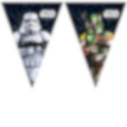 Cool flaggirlang i papp med tuffa motiv av Stormtrooper och Boba Fett från Star Wars. En läcker dekoration att pynta rummet med inför kalaset med roligt Star Wars tema.