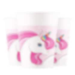 8 st. pappmuggar med superfint motiv av en enhörning med rosa hår. Tjusiga att duka fram på bordet när det är dags för enhörningskalas.