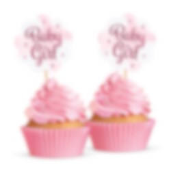Gör muffins och cupcakes extra festliga med dessa dekorativa muffinsdekorationer i rosa med texten Baby Girl. De passar perfekt till baby shower, dop eller välkomstfest och hjälper dig att skapa ett sött och enhetligt dessertbord.