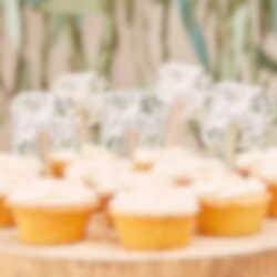 12 st. partypicks med motiv av löv och texten "Hey Baby" från det miljövänliga temat Botanical Baby. Underbara att dekorera dina bakverk med när det vankas babyshower eller dop. Picksen är ca 5 cm höga.