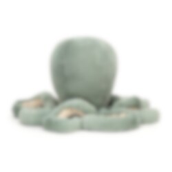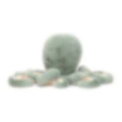En riktigt stor och kul bläckfisk i en härlig nyans av milt grönt med gräddvit bred manchester på undersidan av de åtta ringlande tentaklerna. Denna glada och kramgoa bläckfisk är en bra och gosig kompis som också ger rastlösa fingrar något att pilla med. Tillverkad i 98% polyester, 2% nylon och handtvättas vid behov.