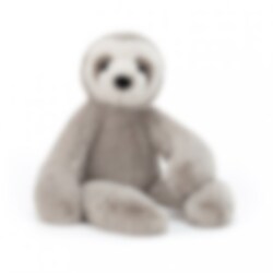 En ljuvligt söt och charmig sengångare i vackert grått och vitt med svart nos och vänliga ögon. En lugn kompis med långa armar och ben, en härligt gosig kropp och ett snyggt hjärtformat ansikte med mörkare fläckar runt ögonen. En riktig raring till gosedjur. Tillverkad i polyester och handtvättas vid behov samt plan- eller hängtorkas.