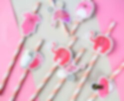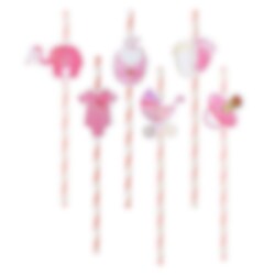 8 st. pappsugrör i sött rosa babyshowertema. Sugrören är ca 20 cm långa och är dekorerade med nappar, babyfötter, elefanter, barnvagnar och babykläder.