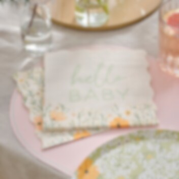 16 st. vackra och somriga servetter som är ett perfekt komplement när du dukar till en babyshower. Servetterna ger ditt bord en vacker blommig touch. Servetterna har 2 lager och är utvikta 30 x 30 cm stora.