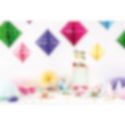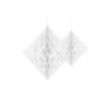 Vacker diamantformad dekoration i vitt honeycomb mönstrat papper som enkelt viks och hålls ihop med dubbelhäftande tejp. Sedan kan den hängas upp i det medföljande snöret. Dekorationen finns tillgänglig i två storlekar, 20 eller 30 cm hög. Priset avser en styck.