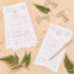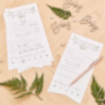 10 st. kort från kollektionen Botanical Baby. Låt gästerna på babyshowern skriva goda råd på korten och ge det sedan till den blivande mamman. Korten är vita med grön text och mäter ca 15,5 x 13,5 cm och är ekovänliga.