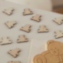 Gulligt konfetti i trämaterial formade som små söta tebbybjörnar från temat Teddy Bear Babyshower. Pynta bordet med detta när det dags för babyshower eller dop. De matchar även med tillhörnade artiklar i temat Hello Baby.