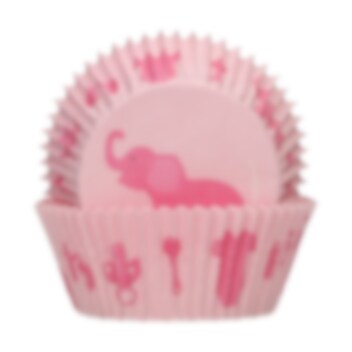 48 st ljusrosa muffinsformar med gulligt motiv av en elefant. Fina till kalas och baby shower.