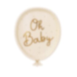 6 st. ballongformade papptallrikar med motiv av texten "Oh Baby" i guldfolie. Tallrikarna är 17,5 x 22 cm stora.