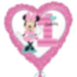 Vacker hjärtformad folieballong med motiv av Mimmi Pigg. En fin dekoration till 1-årskalaset. Ballongen är 43 cm i diameter uppblåst.