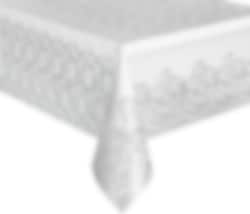 En elegant vit plastduk med vackert spetsmönster. Perfekt för att skapa en fin dukning till kalas, dop eller babyshower. Duken är stor nog att passa de flesta bord med sina mått på 137 cm x 243 cm.