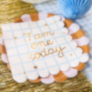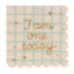 12 st. fina servetter med texten "I am one today" i guldfolie, perfekta till 1-årskalaset med teddybjörntema. Med sina lekfulla färger blir de ett sött och roligt inslag på bordet. Servetterna har 2 lager och är 33 x 33 cm stora när de är utvikta.