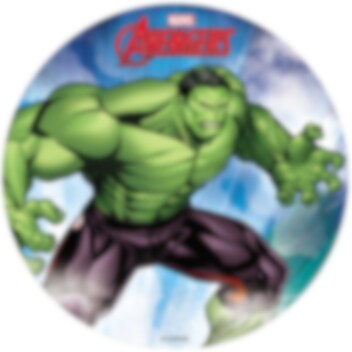 Superhäftig tårtbild av oblat med motiv av superhjälten Hulken från Avengers. Baka en egen personlig tårta till barnkalaset. Bilden som är 20 cm i diameter är enkel att använda. Tårtbilder av oblat är gluten- och laktosfria och har inget tillsatt socker. Passar för vegetarianer.