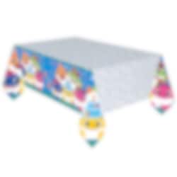 Stor och snygg bordsduk av papper med fint motiv från Baby Shark. En imponerande dukningskomplement till kalaset med Babv Shark tema. Duken är ca 120 x 180 cm stor.