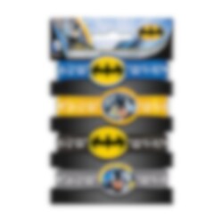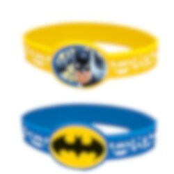 4 st armband i snygga färger och med motiv från tema Batman. Coola armband att ge till kalasgästerna som överraskning i kalaspåsen eller som en rolig present att ge till födelsedagsbarnet. Armbanden är i gummi och är ca 12 mm breda.