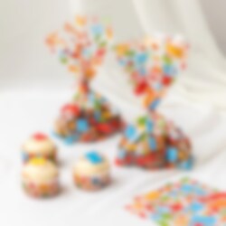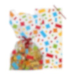 20 st. kalaspåsar i cellofan med motiv av färgglada byggklossar. Påsarna är 29 cm höga.