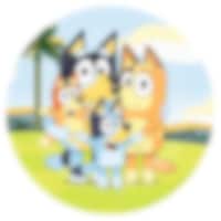 Fin tårtdekoration i Bluey-tema. Den här blir vacker att sätta på tårtan till ditt Bluey kalas. Dekorationen är gjord av papp och är 19 × 25 cm stor.