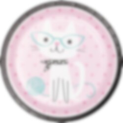 8 st. papptallrikar med en rosa bakgrund och svarta kanter. Tallrikarna har även motiv av en stilig katt med glasögon. Tallrikarna är ca 22 cm i diameter.