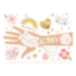 Förpackning med en massa olika snygga tatueringar i ett sött kattema som du kan lägga i barnens kalaspåsar eller partyboxar inför kattkalaset. Förpackningen innehåller 12 st. tatueringar som är fördelade på 1 st. ark.