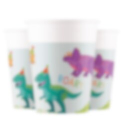 8 st. pappmuggar med färgglada dinosauriemotiv som snabbt sätter stämningen vid kalasbordet. De lekfulla dinosaurierna med små partyhattar och texten ”ROAR!” gör varje dryckespaus till en del av festen. Muggarna är 10 cm höga och rymmer ca 200 ml.
